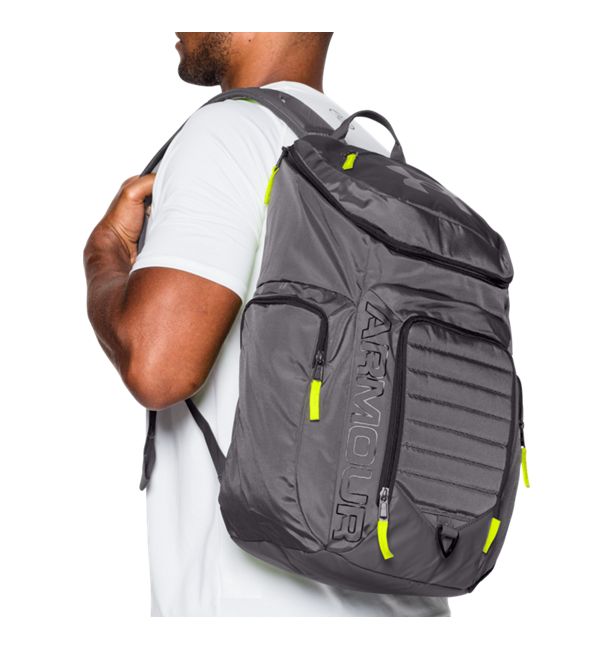 UAStormtechnologydeliversanelement-battling,highlywater-resistantfinishTough,abrasion-resistantbottompanelFoamreinforcedpanelsaddprotectionSoft-linedlaptopsleeve—holdsupto15”MacBookPro®orsimilarlysizedlaptopWater-repellentfrontvaluablespockettokeepyourstuffsafeAdjustableHeatGear®shoulderstrapsforextracomfortErgonomicfoampaddedbackpanelExtralargemaincompartmentwitheasytoploaderaccess2side-zipwaterbottlepocketsFitsasize5soccerball&anNBA-sizedbasketballD-ringforadditionalattachmentpointDimensions:19"x11"x7"CubicVolume:2100PolyesterImported