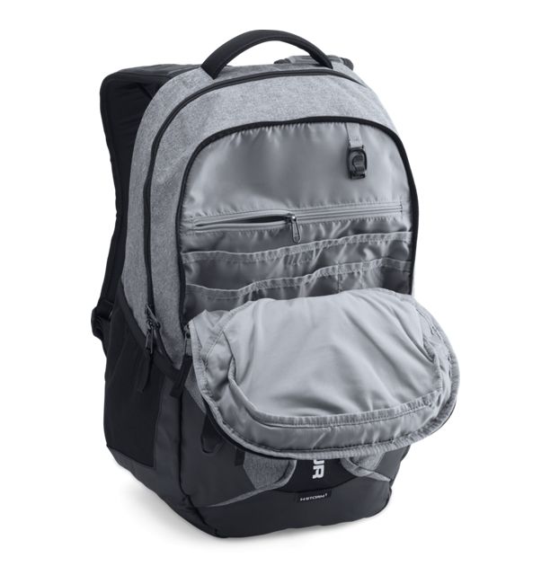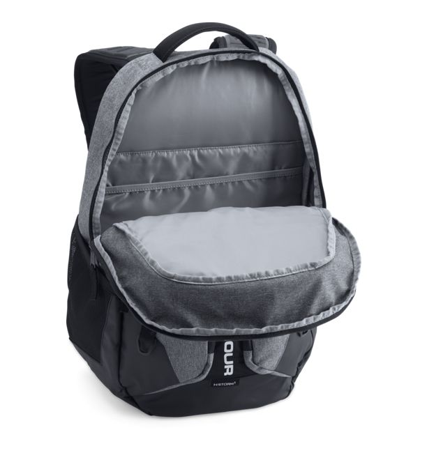 UAStormtechnologydeliversanelement-battling,highlywater-resistantfinishTough,abrasion-resistantbottompanelSoft-linedlaptopsleeve—holdsupto15”MacBookPro®orsimilarlysizedlaptopWater-repellentfrontvaluablespockettokeepyourstuffsafeAdjustable,padded,HeatGear®shoulderstrapsfortotalcomfort2sidewaterbottlepocketsComfortabletopgrabhandleTonsofmollewebbing&2D-ringsonfrontforextraorganizationDimensions:19''x13''x10''Volume:34L100%PolyesterImported