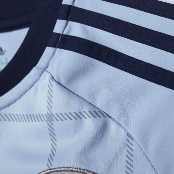 EXTRA CARE INFORMATIONclimalite fabric sweeps sweat away from your skinV-neckPrinted back neck tapeEmbroidered Sporting Kansas City patch sewn on left chestHeat-transfer stripes; Officially licensed by MLS100% polyester engineeredImported