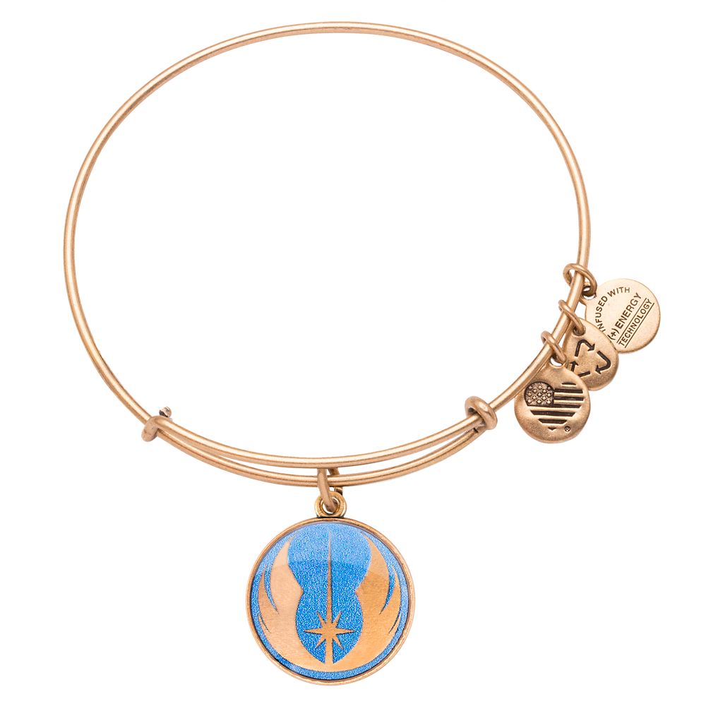 Magic in the details... Created especially for Walt Disney World Resort and Disneyland ResortEnamel cloisonne Jedi Order charm Plus ''Infused With Positive Energy,'' ''Made in America With Love,'' ''Recycle,'' and Patent Number tagsAdjustable metal braceletAvailable in Antiqued Rafaelian gold or silver finish