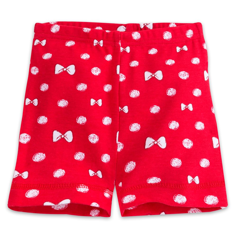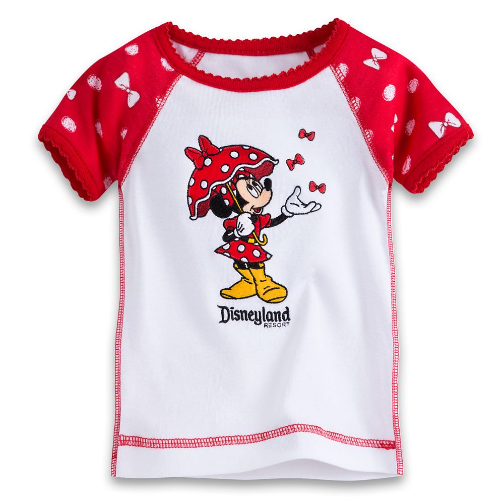 Magic in the details... Created especially for Disneyland Resort Set includes short sleeve tee, pants, and shortsTee features embroidered Minnie applique with embroidered bow accentsEmbroidered ''Disneyland Resort''Screen print design on sleevesRaglan sleevesContrast stitchingPicot trim on neckline and cuffsPants features allover bows and polka dot printElastic waistbandRibbed cuffs at ankleShorts feature allover bows and polka dot printElastic waistband