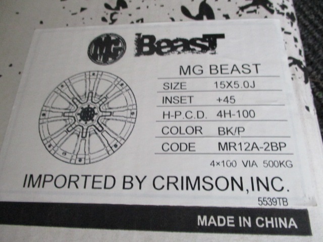 ○ホイール詳細○ メーカー&モデル・・・CRIMSON MG BEAST マーテルギア (BK/P) サイズ・・・15 X 5 オフセット・・・+45 PCD・・・4穴 X 100 ハブ径・・・約67mm(当方の手側ですので、目安にして下さい)