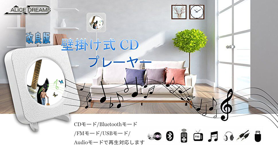 原文:CDプレーヤー Bluetooth4.2 置き&掛け兼用 USB読取可能 MP3 Hi-Fi高品質スピーカー Bluetooth再生可能/ FMラジオ機能 壁掛け式 (白)