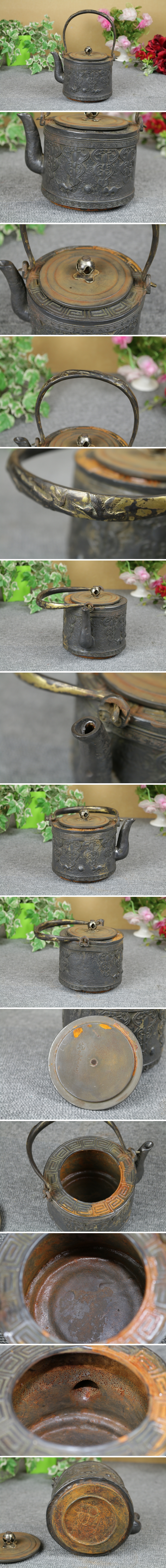 鉄瓶 竹雀堤手 雷文地紋 [水漏れあり]