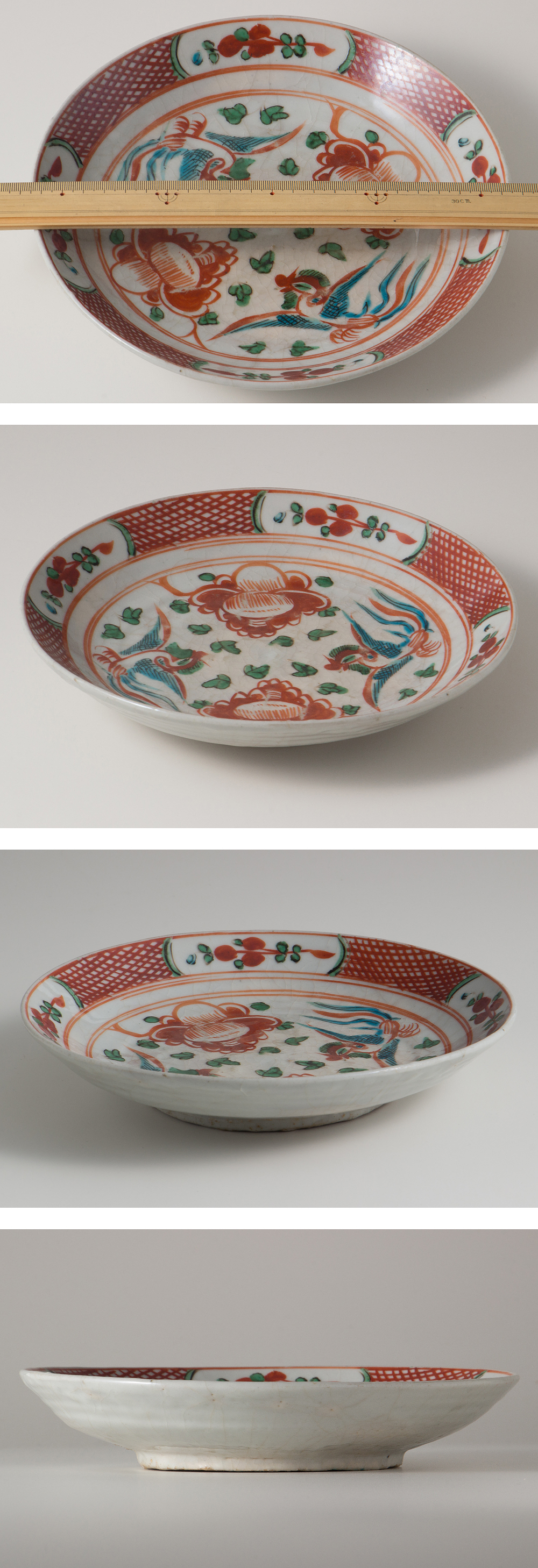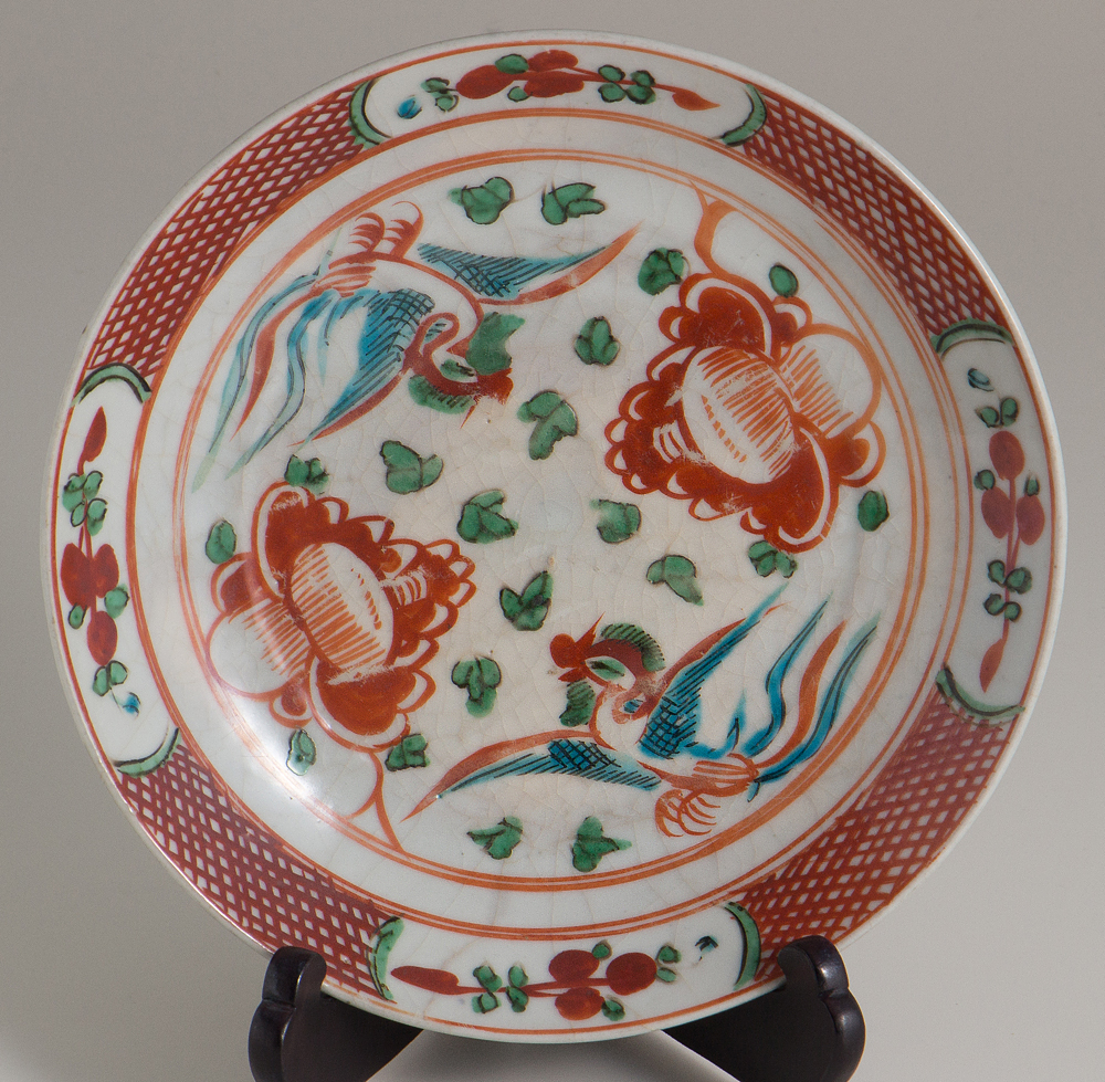 原文:【五】南京赤絵花鳥文鉢 明末清初 箱付 No.32599