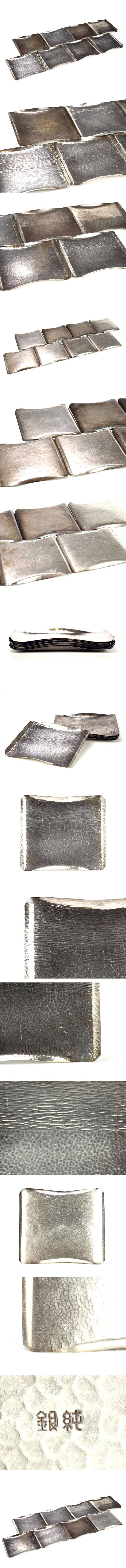 【香】純銀 銘々皿 四方形 鎚目霞目打分 8客 刻印 398g