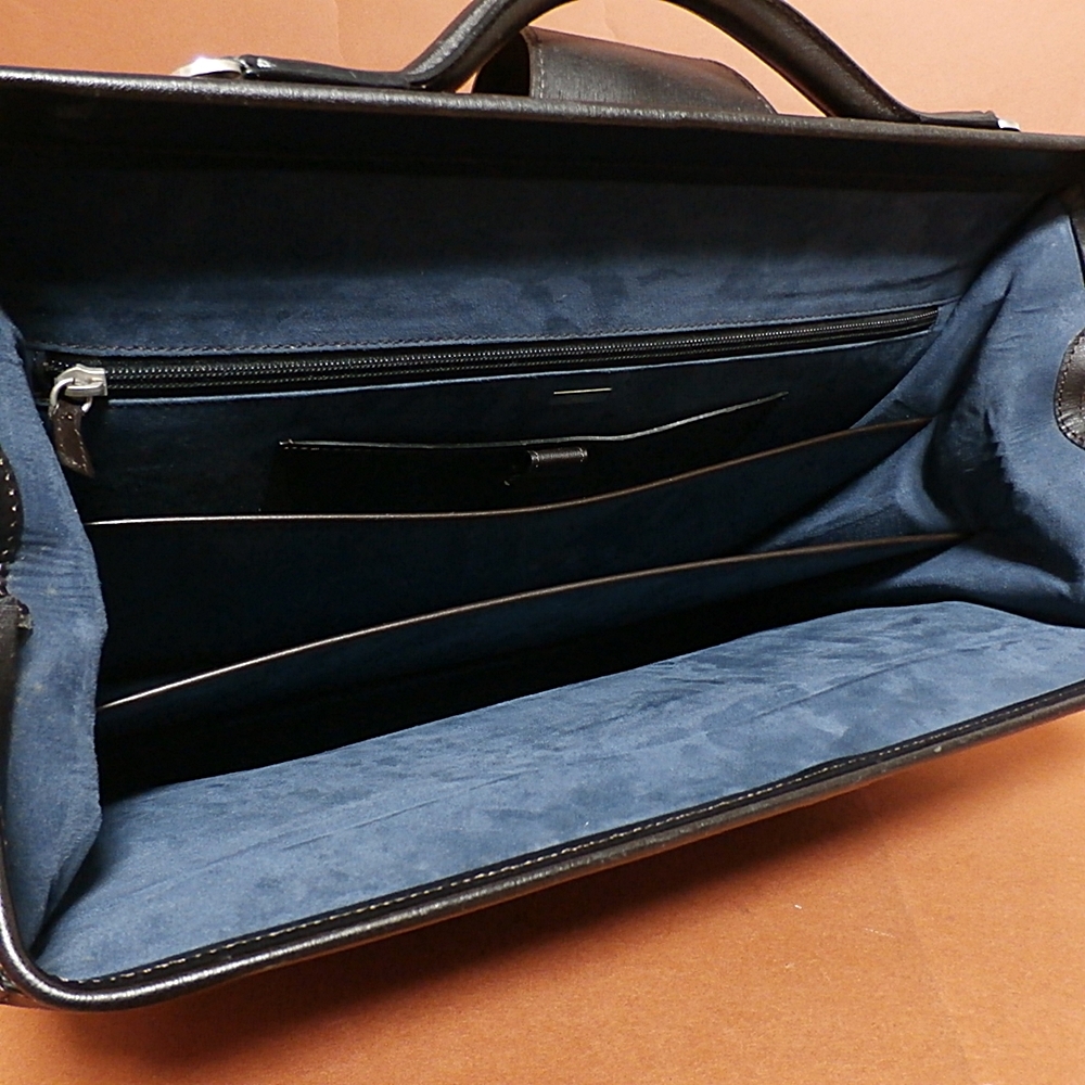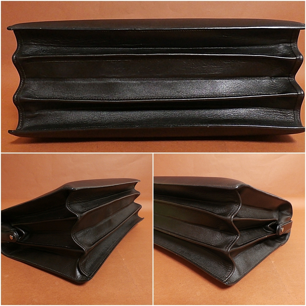 ● 色 柄: 黒に近い焦げ茶 ● 素 材: 本革 ● サ イ ズ(単位cm): ・ W43.5×H32×D17 ※ お色目とサイズでのクレームは一切お受けできません。多少の誤差はご了承下さい。 ● 付属品: 画像にあるもの ● シリアル・型番:画像にてご確認お願い致します。 ● デザイン: ・ 施錠式金具開閉式 / 鍵付き ・ フラップ式差込バックル×絞り紐 ・ 口が大きく開き出し入れ楽々。 ・ 【 マチ】 3つマチ ・ 仕切り有 ・ ショルダーストラップは付属しておりません。 ・ 外ポケット: オープンポケット×1 ・ 内ポケット: メイン収納×3、仕切り有、オープンポケット×1、ファスナーポケット×1、ペンホルダー ・ 外部、内部、すべてを上質の素材と本革で丁寧に作った最上級のビジネスバッグです。 ・ 大きめのサイズで機能性の高いビジネスバッグです。ビジネスシーンで大活躍のお品でございます。 |