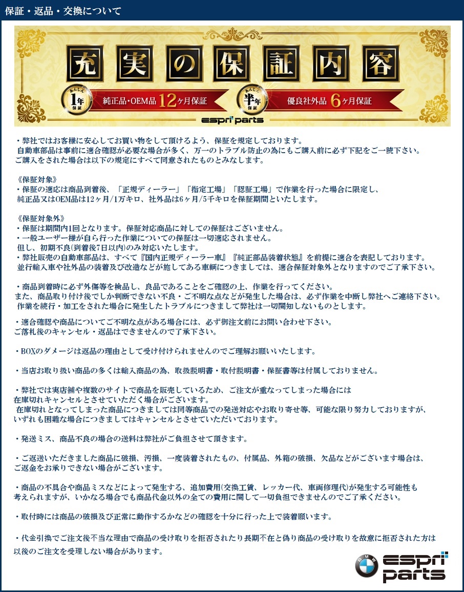 | 注意事項 | 取付作業は必ず専門知識を持った方の元でおこなってください。 ※取付ミス・正常外の使用による不良交換は出来兼ねます。 返品や悪質な入札、落札後のキャンセルは一切御遠慮ください。 銀行振込みの手数料は落札者様の側でご負担をお願いします。 ご質問、ご連絡対応等可能な限り迅速に対応します。 | |
