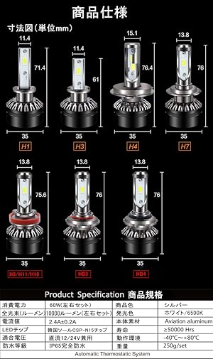 原文:1円からledヘッドライトH1/H3/H4/H7/H8/H11/H16/HB3/HB4/9012選択可N15-CSPledチップ 車検基準 60W 10000ルーメン ホワイト6500K 2本