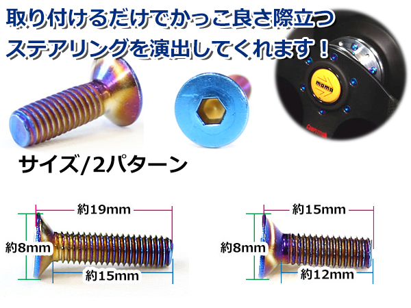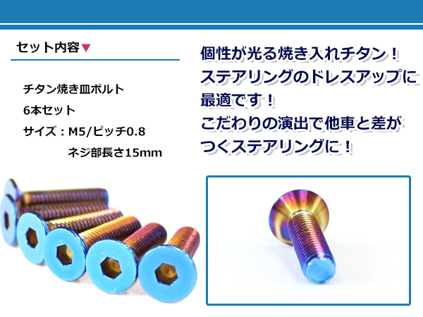 原文:☆送料無料☆稀少!焼き入れ チタン MOMO ナルディ ステアリング対応! 低頭 六角 M5 P0.8 12mm 皿頭 ボルト 6本セット