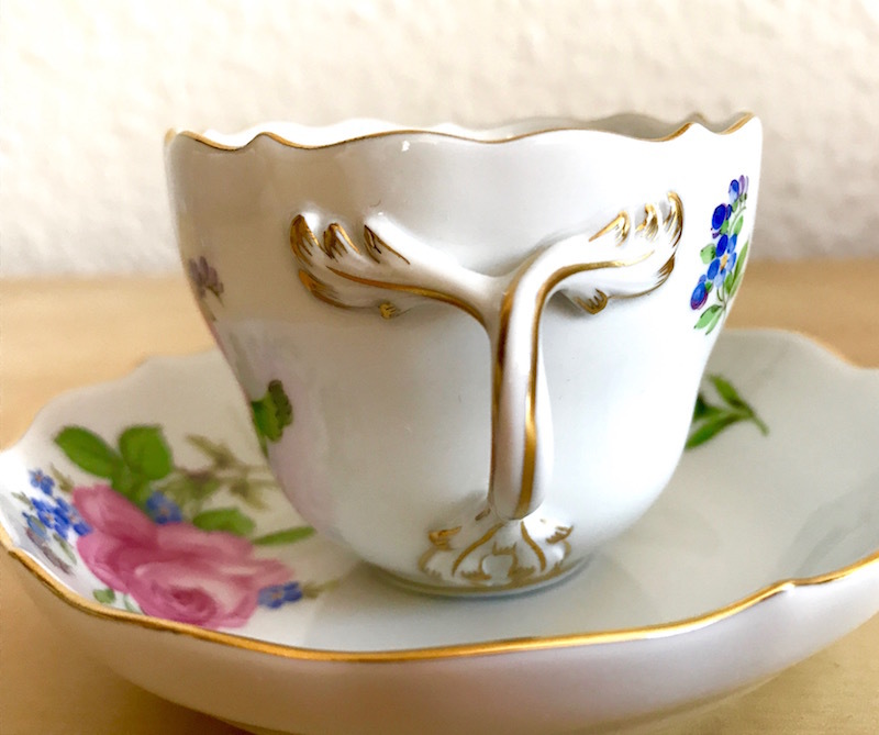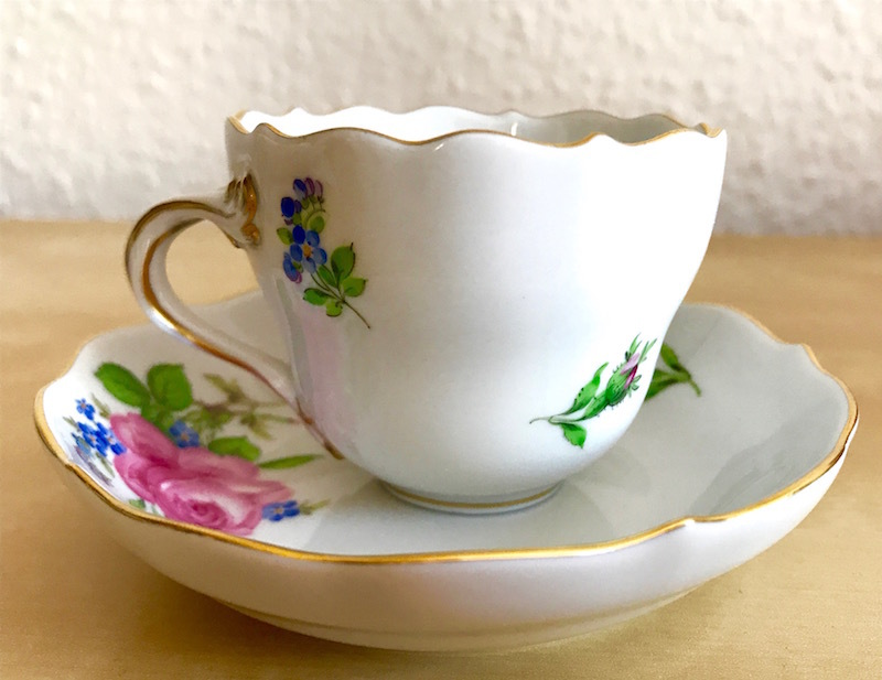 レア!展示品 金縁 マイセンフラワー ピンクローズと忘れな草