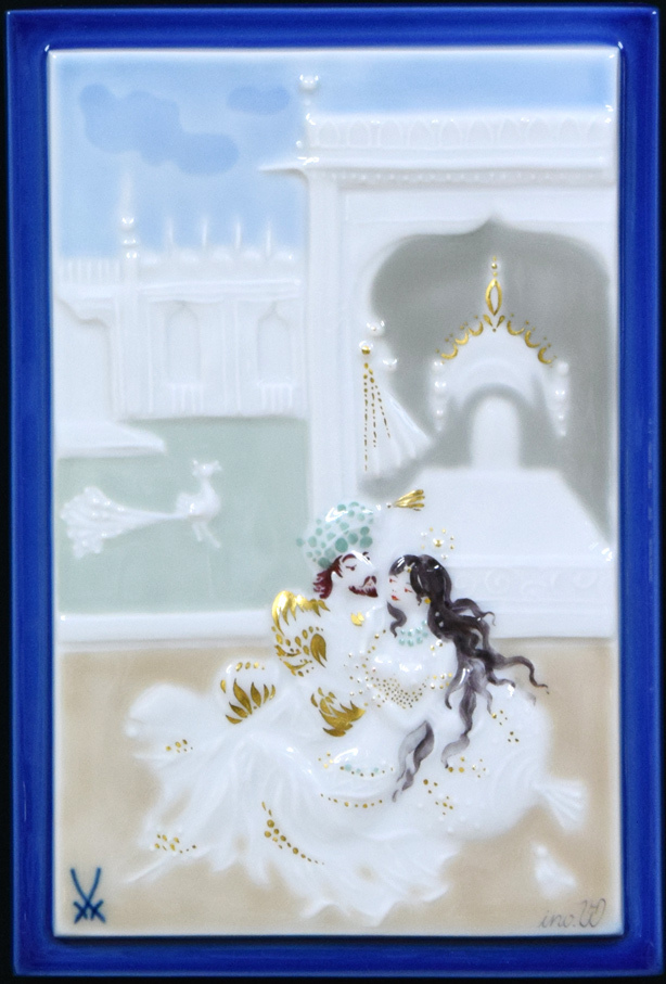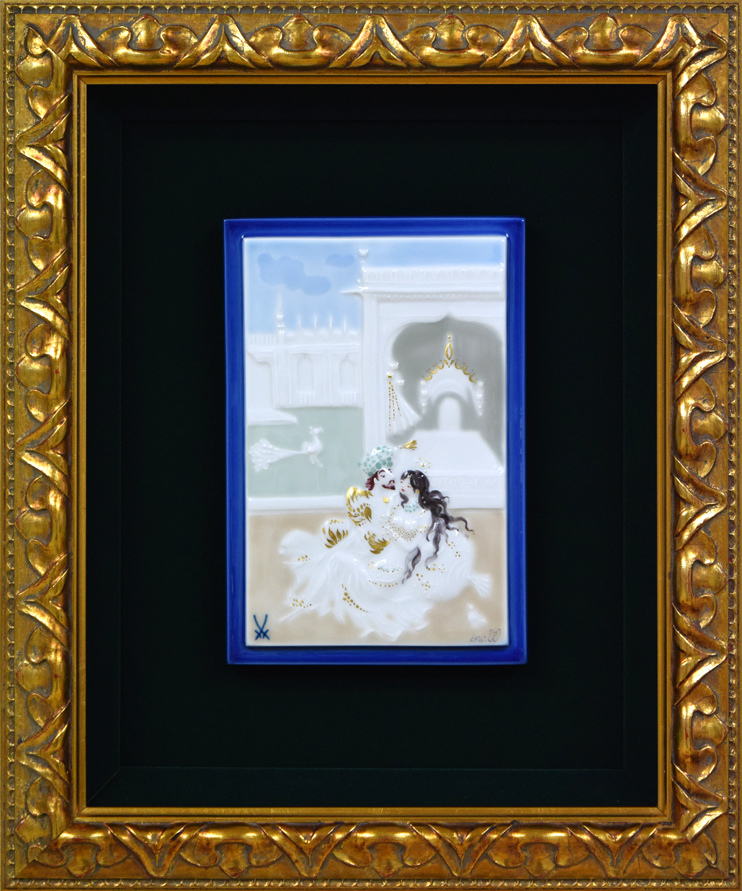 原文:真作保証!!■マイセン■「アラビアンナイト(パレステラス)」陶板画(プラーク)■デザインはハインツ・ヴェルナー■人気豪華額装!!
