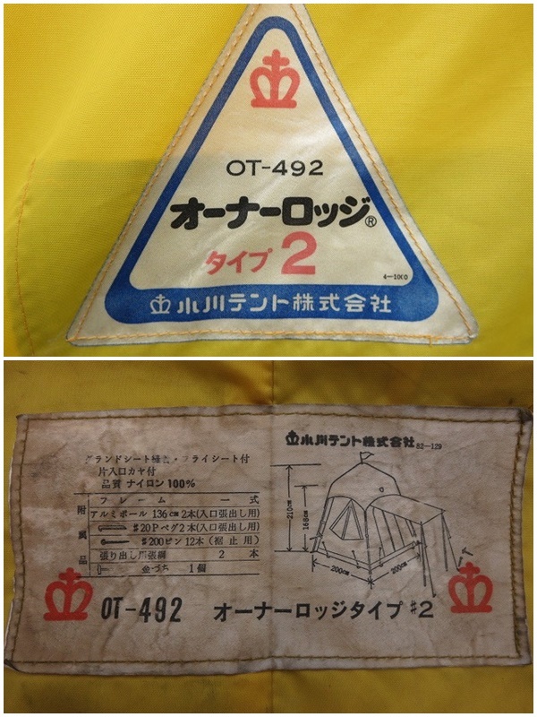 原文:◇ 小川テント/ オーナーロッジ タイプ2 / OT-492 /ブルーイエロー/アウトドア/キャンプ/希少◇