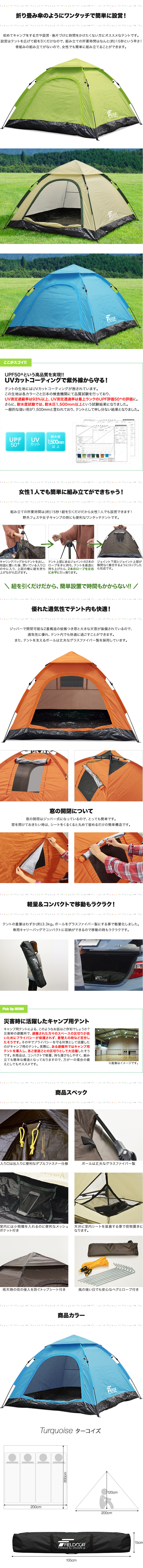 原文:大盛1★組立時間15秒! FIELDOOR スクエア型 ワンタッチ テント 【 4人用 / ターコイズ 】 簡易テント ドームテント キャンプ アウトドア