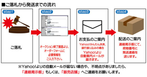 | ご落札後に届く 「自動送信メール」 のご案内をご確認頂いた上 オーダーフォームへ必要事項のご入力をお願いいたします。 通常のお取引の場合は、ご入金確認後の発送手続完了まで、自動送信メールによるご案内となり、こちらからのご連絡は致しません。 | ||||||||||||||||||||||