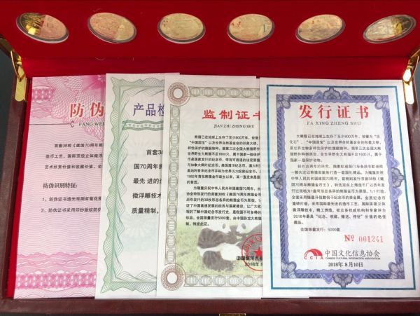 中國熊貓金紀念館中國人民銀行發行貴重物品38枚,包括硬幣