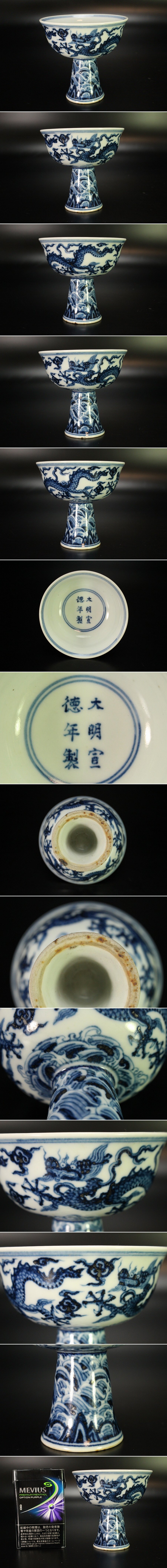 原文:【金閣】中国美術青花雲龍紋高足碗宣徳年製款旧家蔵出(O594)