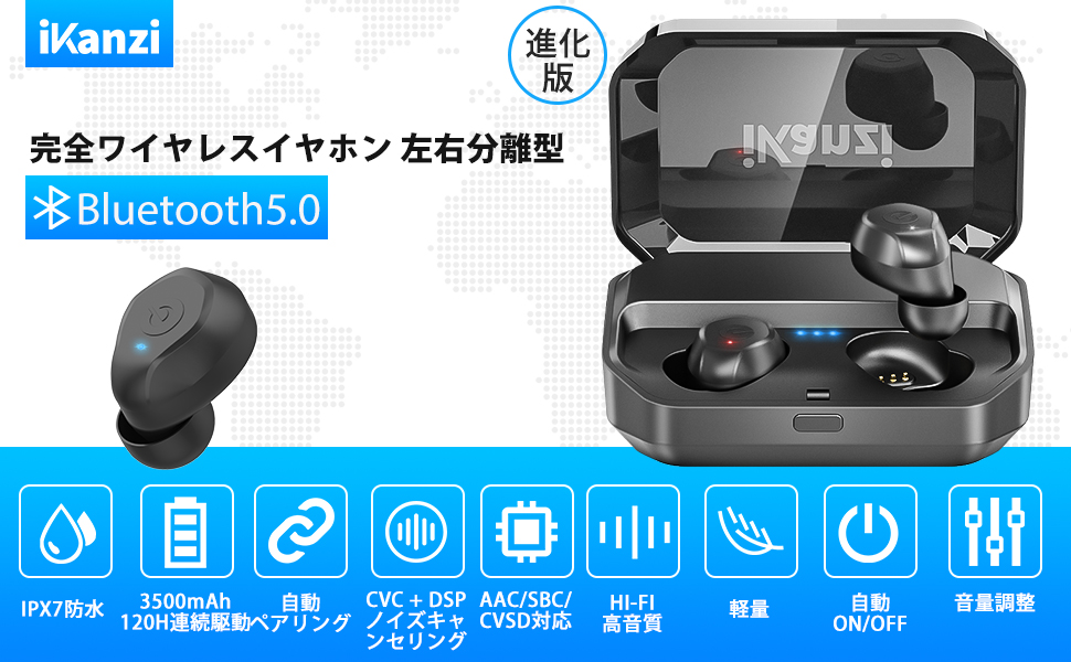 原文:新品【最新版 Bluetooth 5.0+EDR 120時間音楽再生】 Bluetooth イヤホン 完全 ワイヤレス イヤホン IPX7完全防水 3500mAh T6149