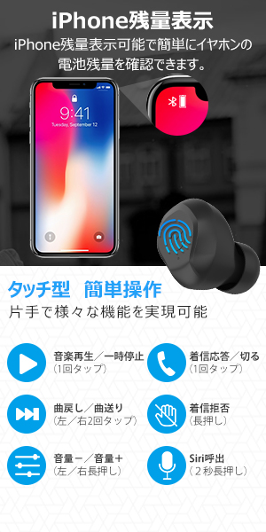 - 【IPX7完全防水&自動ペアリング&簡単操作】IPX7完全防水なので、汗や水しぶき、雨などからイヤホンを守り、運動中でも快適にリスニングできます。充電のケースから出し入れするだけで電源ON/OFFの切り替えと、端末とのペアリング設定モードが自動で起動します。2度目からは自動で機器に接続します。オンボタンで音楽再生/一時停止/音量調整/次の曲/曲戻す、通話開始/終了/拒否などの操作を全て実現可能です。