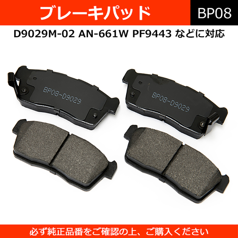 | 各メーカー対応品番 | エムケーカシヤマ:D9029M-02 曙 アケボノ:AN-661W 日清紡:PF9443 |