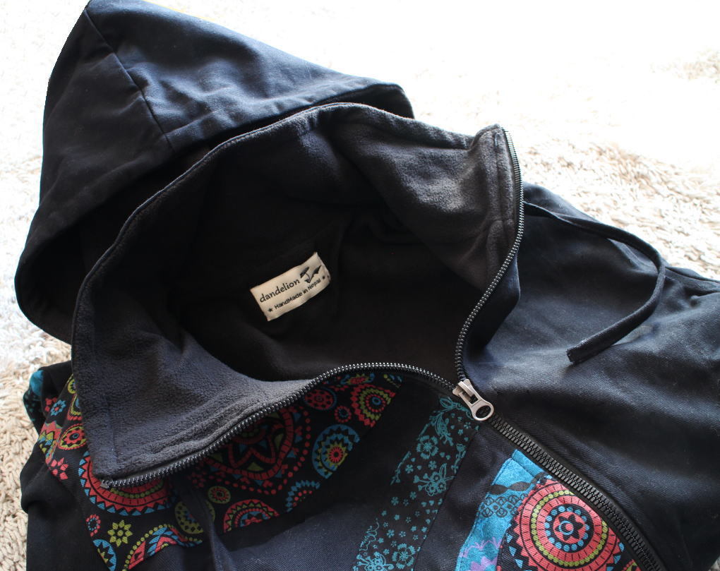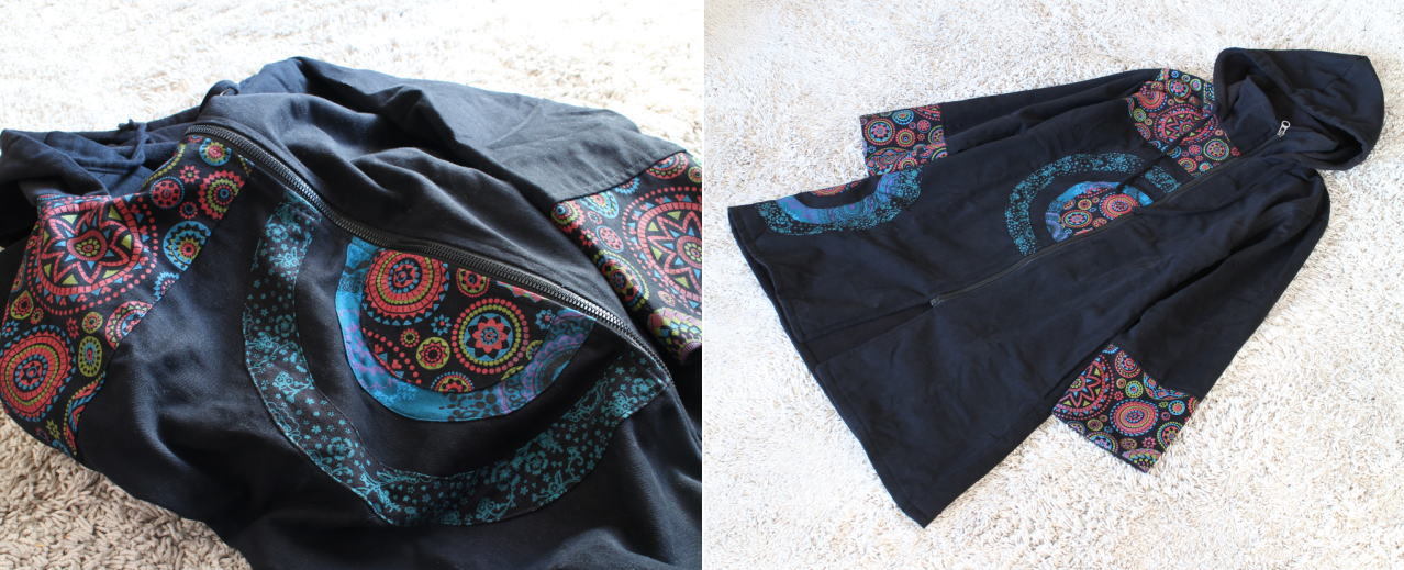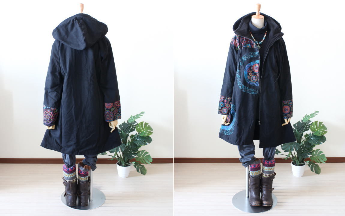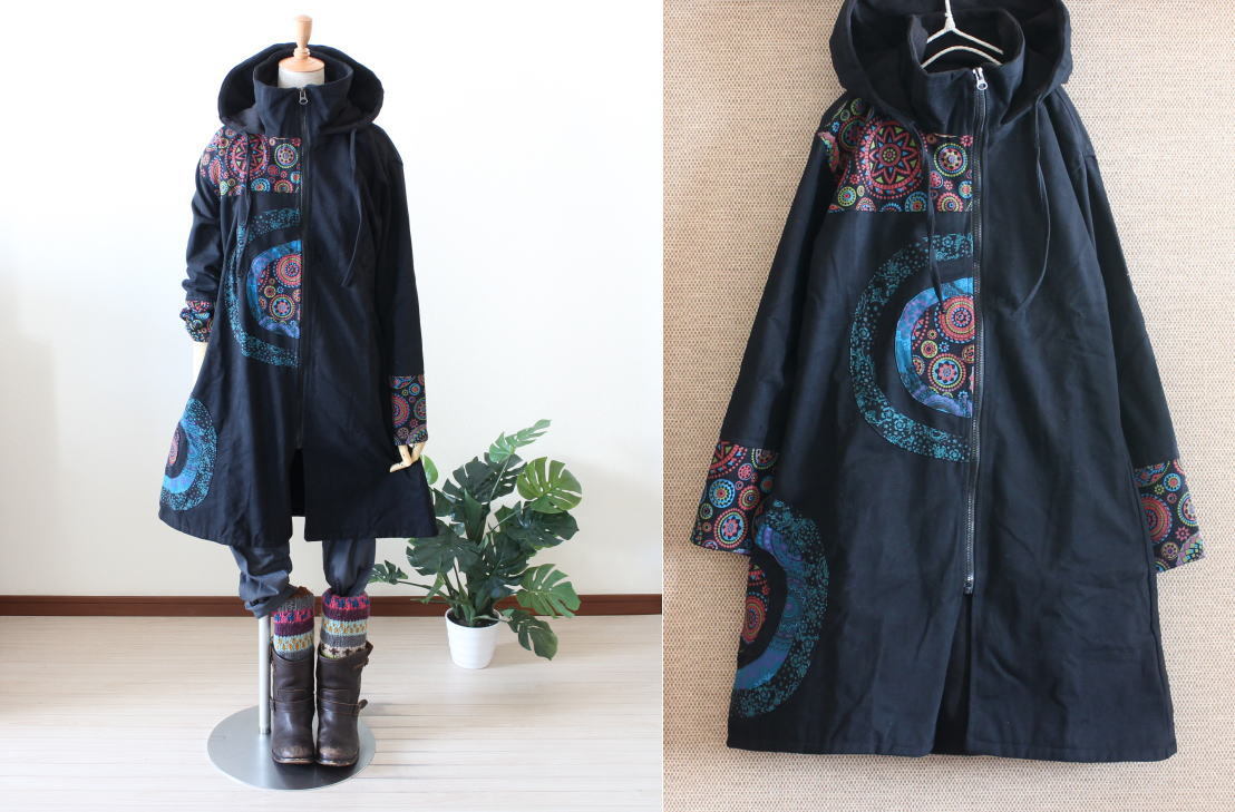 原文:当店オリジナル*裏地フリース*サークルパッチワーク切り替え*ハイネックフードロングコート*エスニック*ネパール*ユニセックス*AN