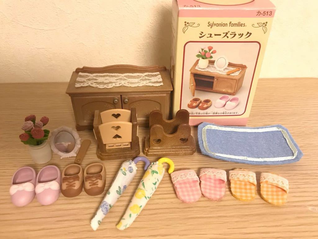 原文:シルバニアファミリー シューズラック、スリッパ・かさ立てセット☆中古☆
