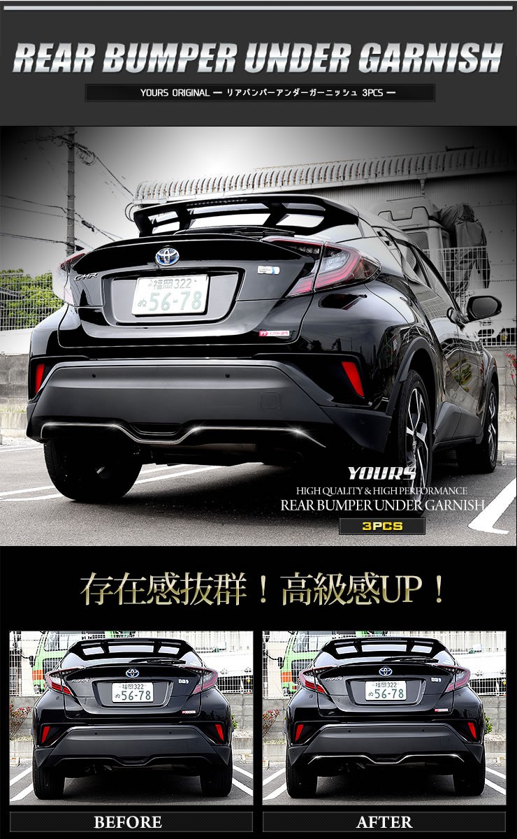 原文:チョイ傷特価品! 100円~ C-HR CHR メッキ リアバンパーアンダーガーニッシュ 3pcs ZYX10/NGX50 高品質ステンレス採用