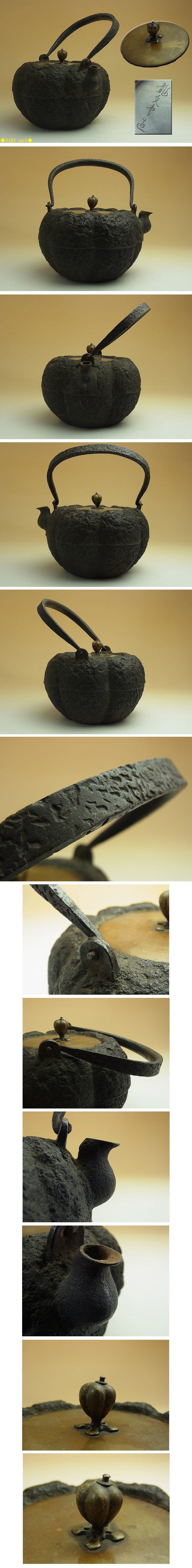 龍文堂造 南瓜形鉄瓶 在刻銘です。