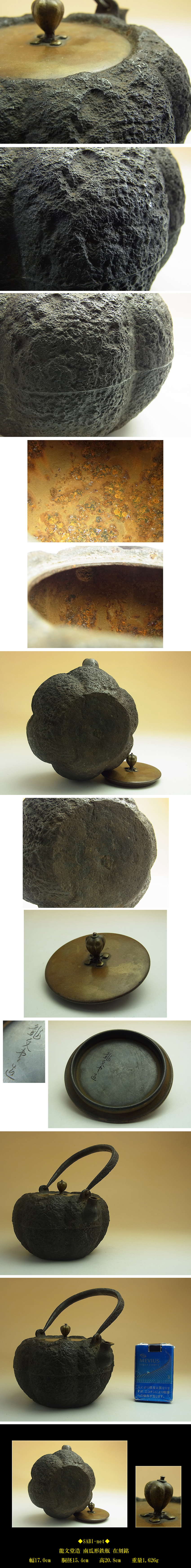 原文:SABI龍文堂造 南瓜形鉄瓶 在刻銘煎茶 湯沸 岩肌 阿古陀