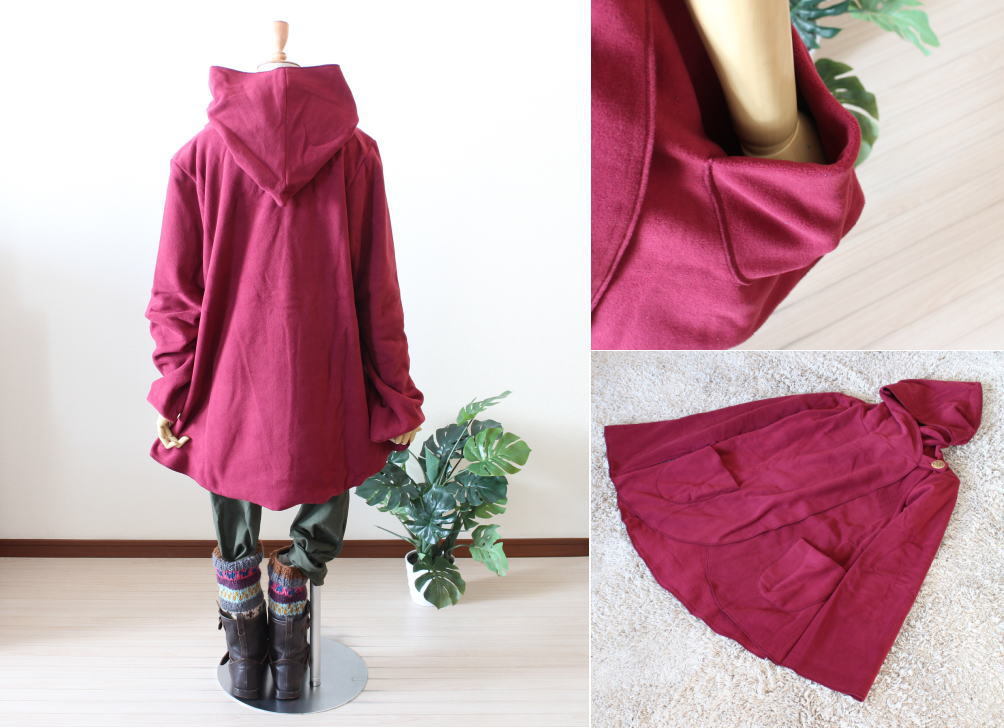 原文:フリース素材*軽くて暖か*ポンチョ風*ハイネックフードジャケットコート*エスニック*ネパール*ユニセックス*レッド*PnT