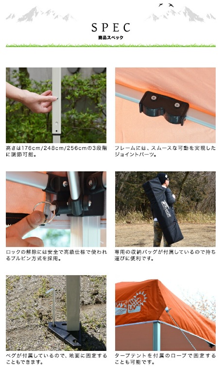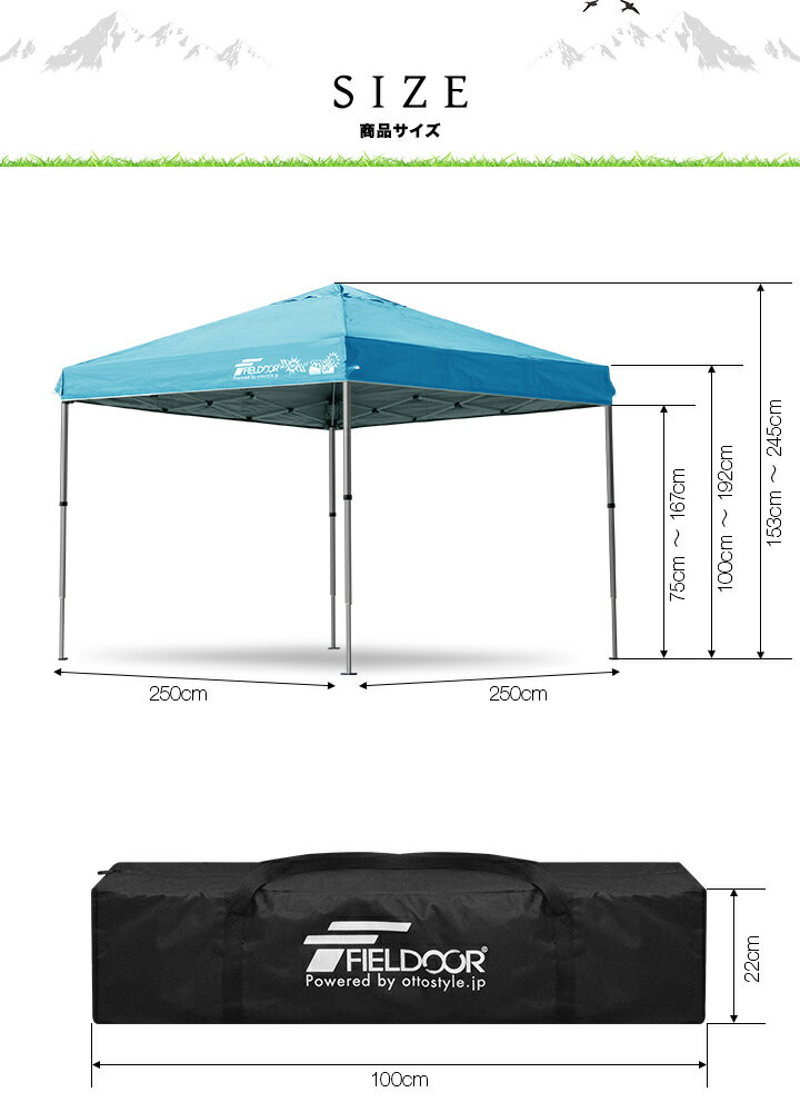 原文:FIELDOOR タープテント 2.5×2.5m 【アルミ/キノコ】 ワンタッチ タープ テント 軽量 組立て簡単 UV加工 イベント 日よけ*即納