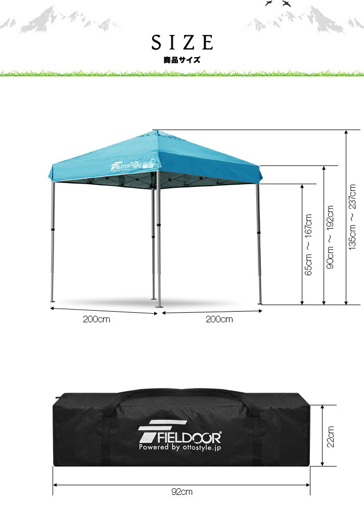 原文:FIELDOOR タープテント 2.0×2.0m 【アルミ/キノコ】 ワンタッチ タープ テント 組立て簡単 UV加工 イベント バーベキュー 日よけ*即納