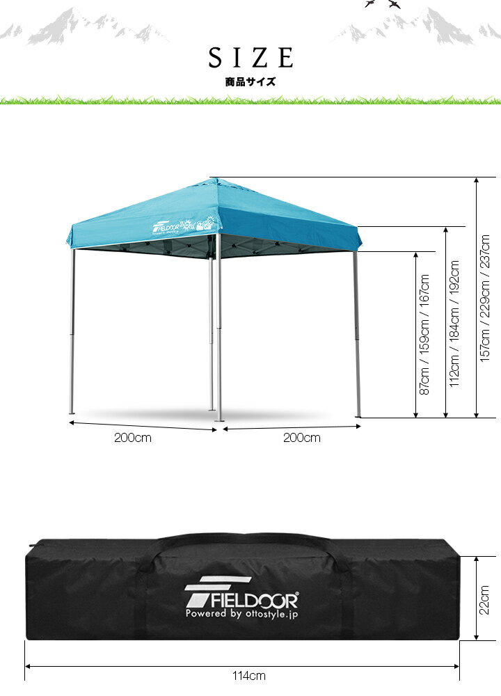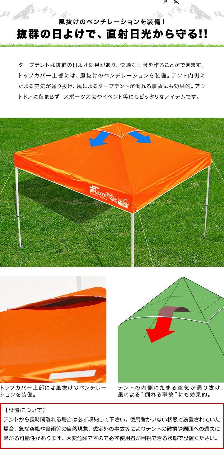原文:【FIELDOOR】 タープテント 2.0×2.0m [ スチール製/キノコ ] ワンタッチ タープ テント 組立て簡単 UV加工 イベント 日よけ*即納