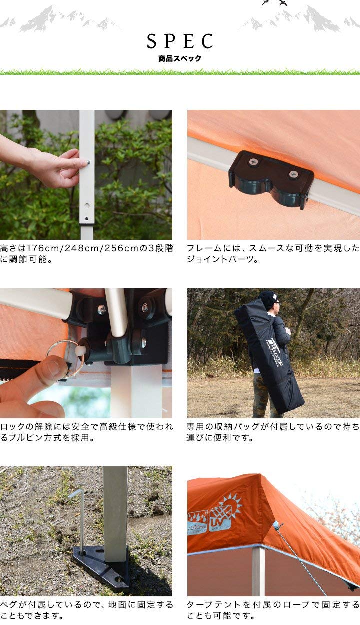 2010年実用新案取得! ベンチレーション・UVカット加工・高耐水加工 組立て簡単!! ワンタッチタープテント サイドシート付き[3.0m×3.0m/スチール製/2段脚タイプ] |