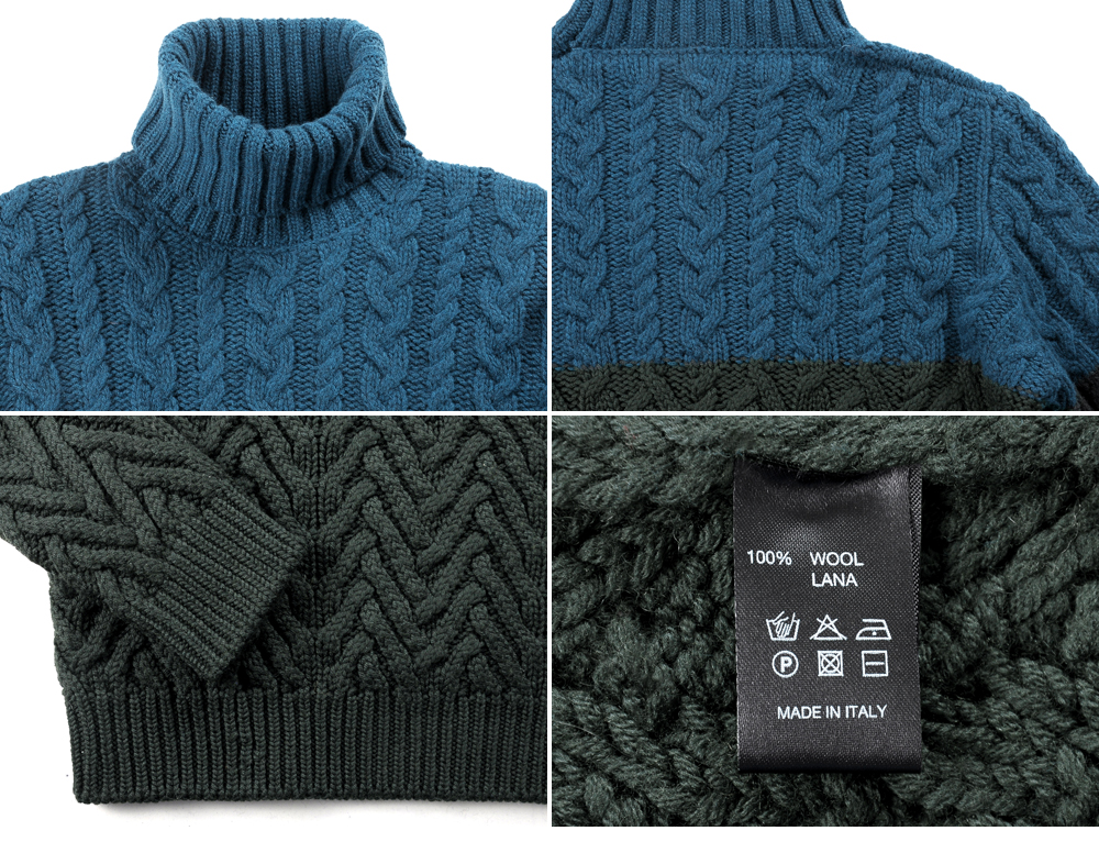 タートルネック(リブ編み)、ケーブル編み、バイカラー、袖先・裾まわりリブ編み Condition / 状態 新品未使用(正規品) Price / 定価 ¥46,440(税込) Option / 付属品 ブランドタグ Made in / 製造国 made in ITALY |