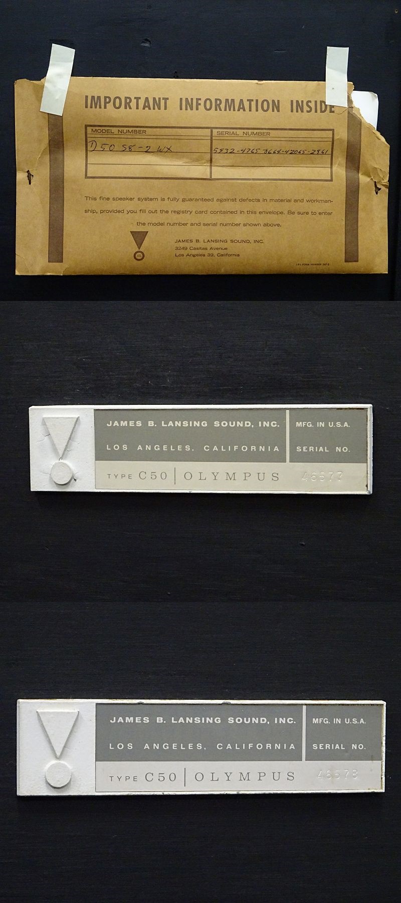 構成から1964年以前の初期モデルのオリンパスかと思われます。 IMPORTANT INFORMATIONには「D50 S8-2WX」と記載がございます。 ユニット構成 ツイーター:075×2 ウーファー:LE15A(ブルーフレーム)×2 ネットワーク:LX5(ブルーフレーム)×2 ネットワーク:N7000×2 エンクロージャー:C50 音は出ておりますが片方LOWの音が若干小さく、左右のアッテネーターにガリ・接触不良が見られたため難あり商品での出品とさせて頂きます。完全ノークレーム・ノーリターンでお願い致します。(ユニット自体は音が出ますので、ネットワークのLX5が不良かと思われます。) 外観に関しましては中古品で個人差もありますので画像にてご判断ください。※経年によりネットが若干反っております。またダボ折れ補修痕がございます。 画像にて不明な点はご質問下さい。 画像に写っているもの以外は付属いたしません。 【送料目安】 発地 福岡→ 九州 約27,400円~31,400円 中国 約31,900円~33,900円 関西 約33,900円~40,800円 関東 約41,900円~50,700円 東北 約52,200円~63,400円 ※北海道・沖縄地域に関しましてはお問い合わせ下さい。 ※四国に関しましては別途考航送料がかかるためお問い合わせ下さい。 ※本製品は重量物となるため運送員2名での配達となります。 ※送料に関しましてはあくまでも目安となり地域・搬入先状況によって異なりますので必ずご入札前にお問い合わせください。 ※本商品は配達日時指定不可となります。お急ぎの方はご相談ください。 ※上記送料は当店規定運送会社の料金となり、原則玄関でのお渡しとなっております。別途、有料になりますがご指定の場所まで運ばせて頂くサービスもございますのでご相談下さい。 【落札後の取引手順】 ・落札後はオーダーフォームにて、必要事項をご入力後、送信ください。 取引終了後48時間以内に連絡をお願い致します。 ご連絡が頂けない場合は落札者様都合でのキャンセルとさせていただきます。 (商品代金+消費税+送料)の入金をお願い致します。 ・お支払い方法は銀行振込/ヤフーかんたん決済のみです。 ※ストアになりますので落札価格に別途消費税がかかります。 ※商品代金引換(代引き)のお取り扱いはしておりません。 ※領収証の発行が必要な方はご連絡ください。 ※振込手数料はご負担願います。 入金確認後に出荷手配を致します(入金確認後3営業日以内に発送いたします※大型や重量のある製品はお時間をいただく場合もございます。) ・発送は当店指定の運送会社の元払いのみでの発送となります。 ※他の運送会社、送料代引き等は致しかねますので、あらかじめご了承ください。 ・大型/重量物商品につきましては荷降ろし状況等により送料が大きく前後いたしますので事前に別途お見積り後の入札をよろしくお願い致します。 【保証について】 ・商品到着後、万一初期動作不良、また配送中の事故による破損、不具合が有る場合は、商品発送後10日以内にご連絡いただいた場合に限り商品代金を全額返金します。※修理での対応を優先させていただきます。 (商品代金+消費税+送料のお支払い頂いた金額となります) ※ジャンク商品、現状商品、難あり商品の場合は上記の限りではありません(保証対象外となります) 【評価について】 評価不要の場合、必ずオーダーフォームの「要望欄」にてお知らせください。それ以外でご連絡をいただいた場合、対応できない可能性がございます。一度行った評価はシステム上取り消しが行えませんのでご了承ください。 【キャンセルについて】 ・入札後、いかなる事情がおきましてもトラブル防止の為、入札を削除等は致しておりません。 万一、落札後キャンセルされる場合は、商品代金の20%を頂きます。ご了承ください。 【入札に関しての注意事項】 ・最近イタズラ入札が多く見られるため、新規IDの入札は当店の判断により取り消しをさせていただく場合がございます。 新規IDの入札者様は事前に質問欄よりご連絡ください。 ・店頭でも販売をしていますので予告なしに出品を取消す場合がございます。 ・落札後48時間以内(土日、祝は除く)にオーダーフォームよりご連絡ください。 連絡なき場合は落札者都合でのキャンセルとなりますのでご了承ください。 ・オークション対応につきましては、平日10時から19時までとさせていただきます。 土・日・祭日に終了・ご連絡いただきましたものに関しましては休日明けから順次対応させていただきます。 年末年始・GW・夏季・冬季休暇に関しましても同様です。 ※ご入札いただきました時点で、説明文を含む全てに同意いただいたものとさせていただきます。 |