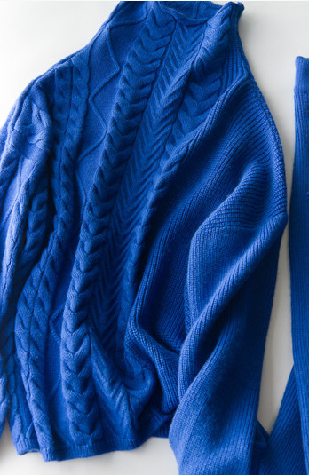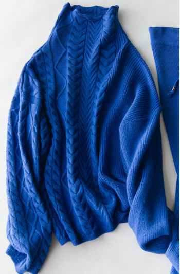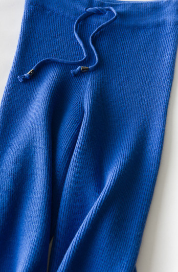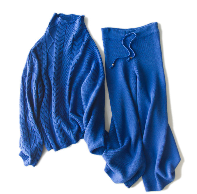 原文:☆新品 ☆高品質☆ ウール 100% リラックスシルエット 素敵なニットパンツセット ブルー