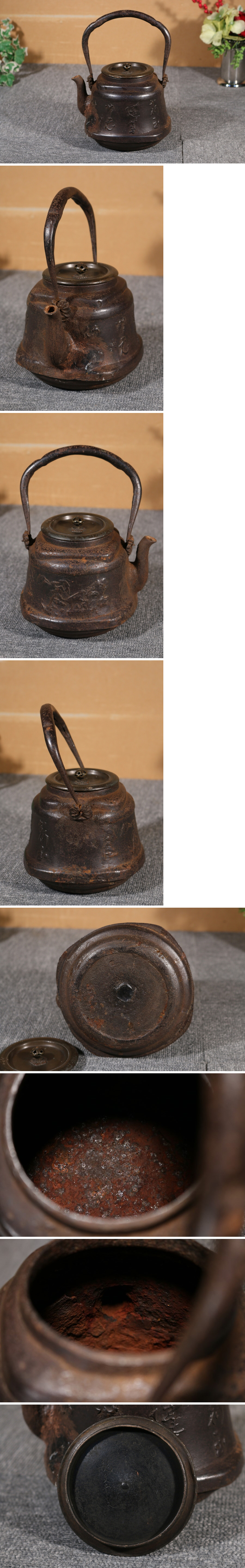 原文:鉄瓶 龍文堂銘蓋 山水図 水漏れあり
