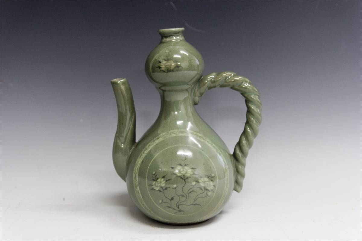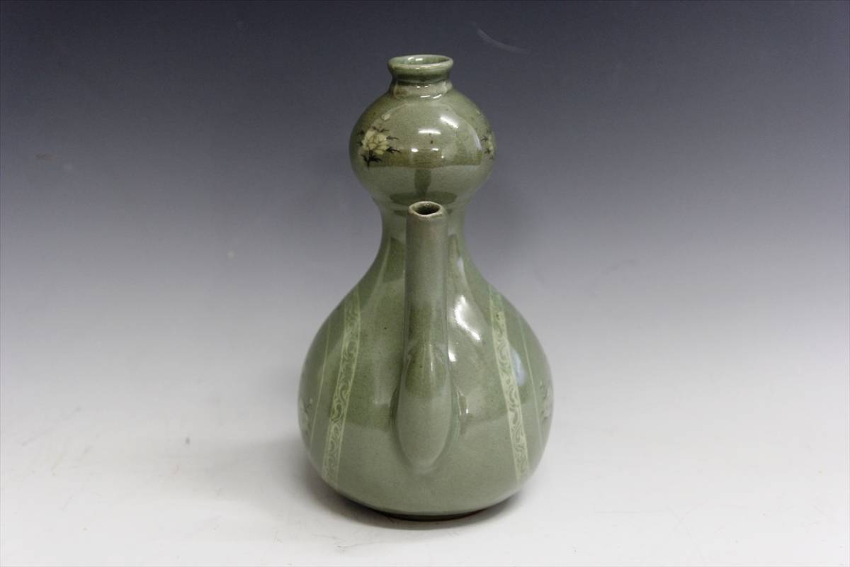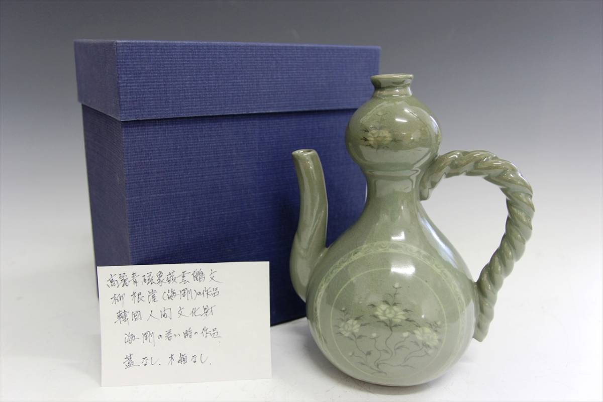 | 【真作保証】 韓国人間文化財 柳海剛 高麗青磁象嵌雲鶴文 水注 初期の作品 |
