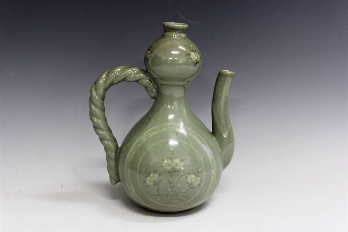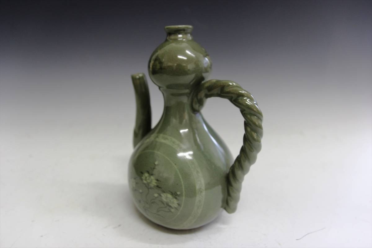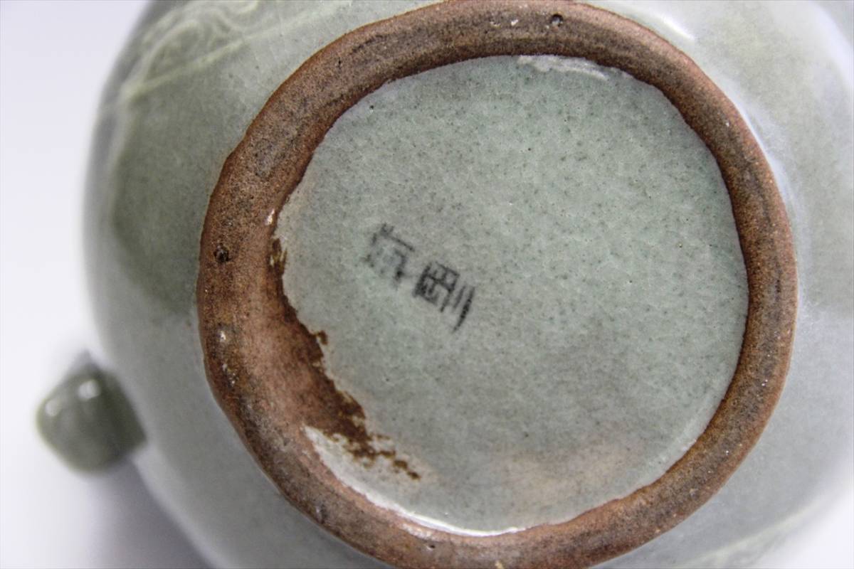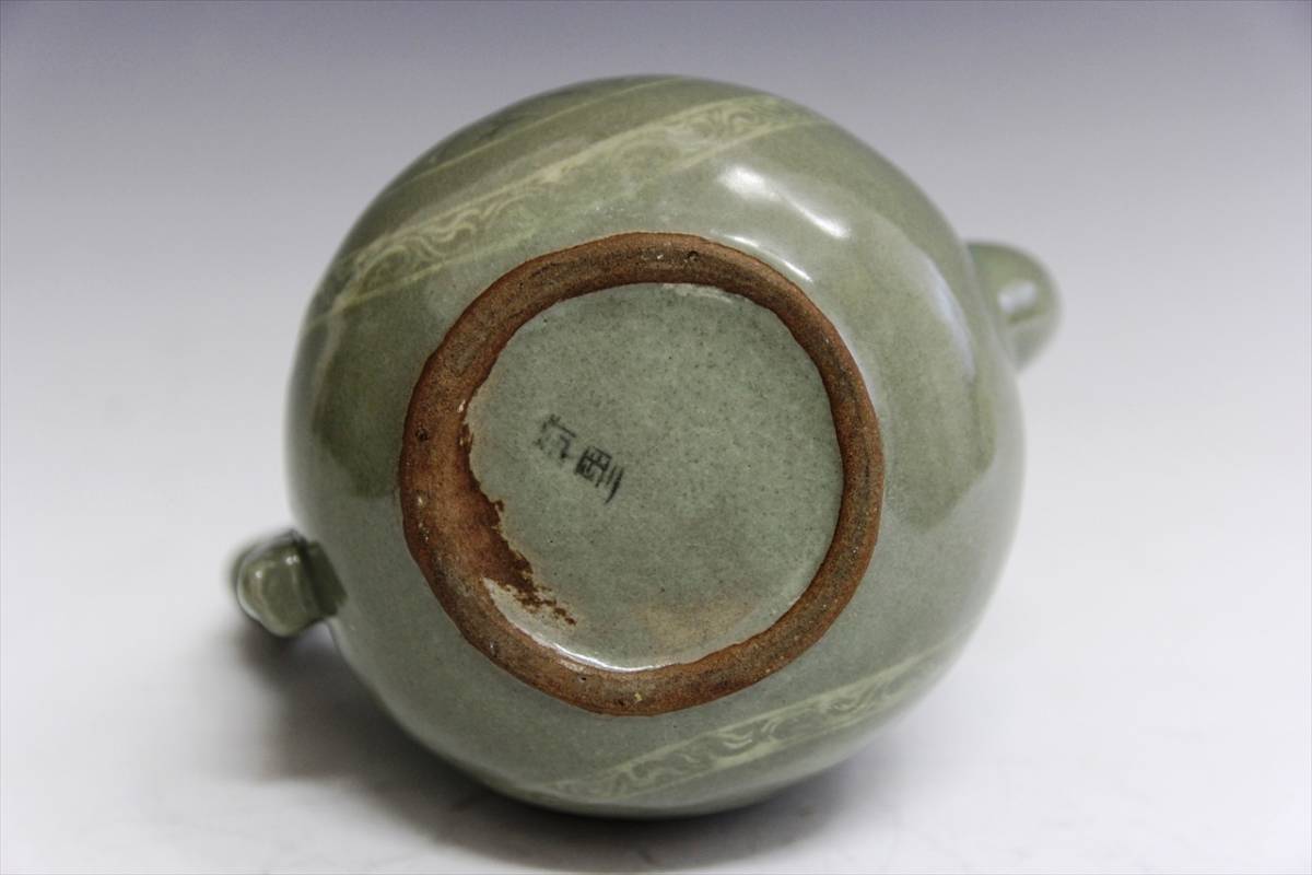 | 【真作保証】 韓国人間文化財 柳海剛 高麗青磁象嵌雲鶴文 水注 初期の作品 |