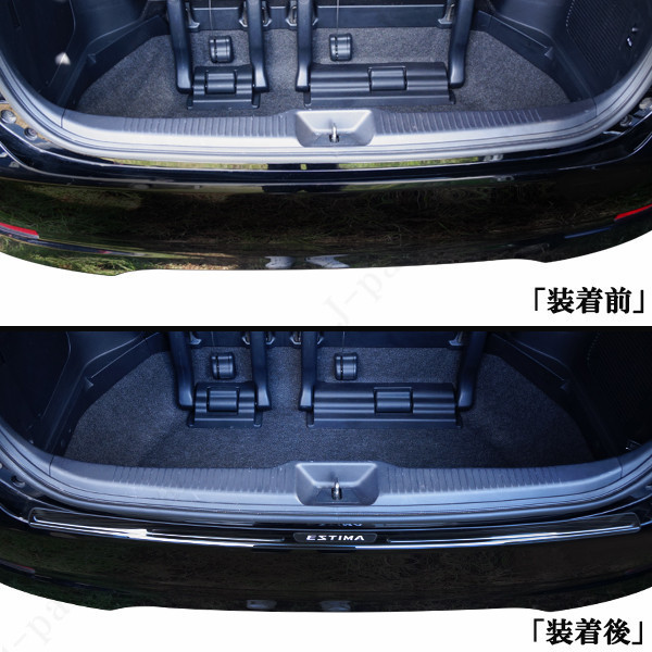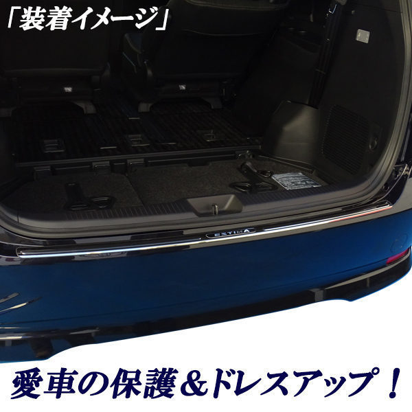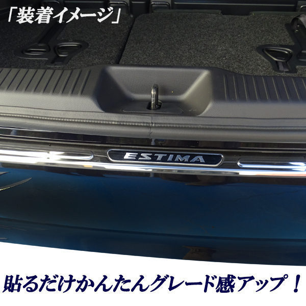 原文:1000円~ エスティマ 50.55系 メッキステンレス製 リアバンパーガード 未使用 新品 貼り付けタイプ ブラック車名入り 愛車保護
