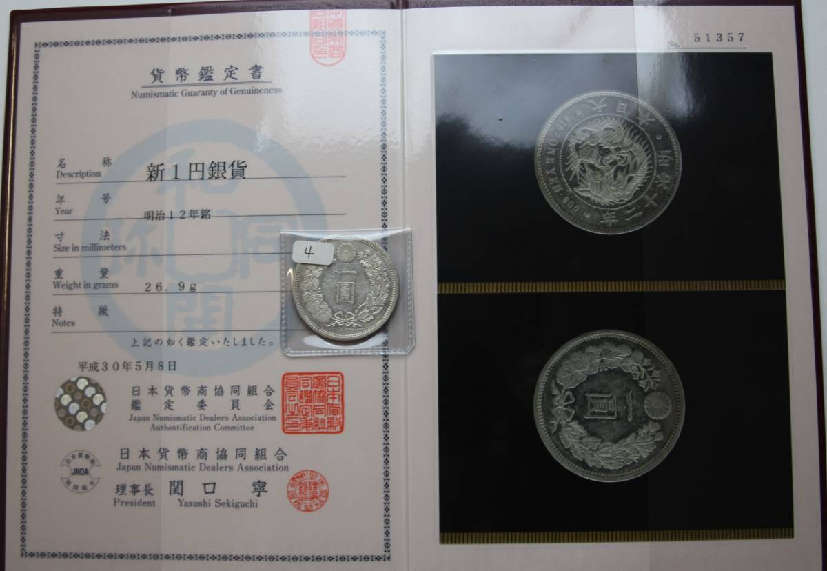 原文:大特年[鑑定書付き] 一圓銀貨 明治12年 未使用 希少好状態