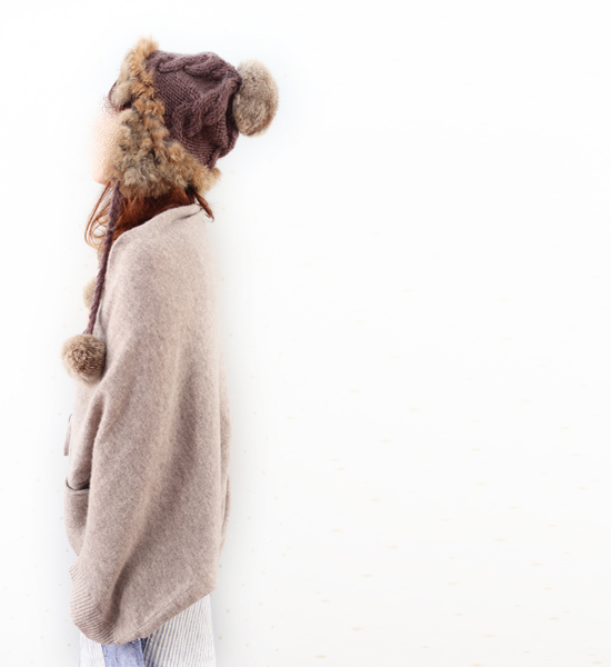 原文:CA4LAカシラ☆茶ニット×リアルファーボンボン付きニット帽☆★