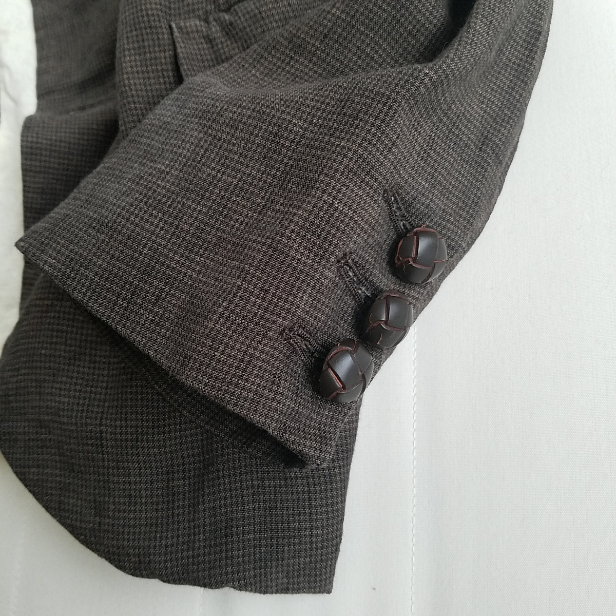 細かな千鳥格子織りになります。よく見ないと分からないようなさりげない千鳥格子になります。