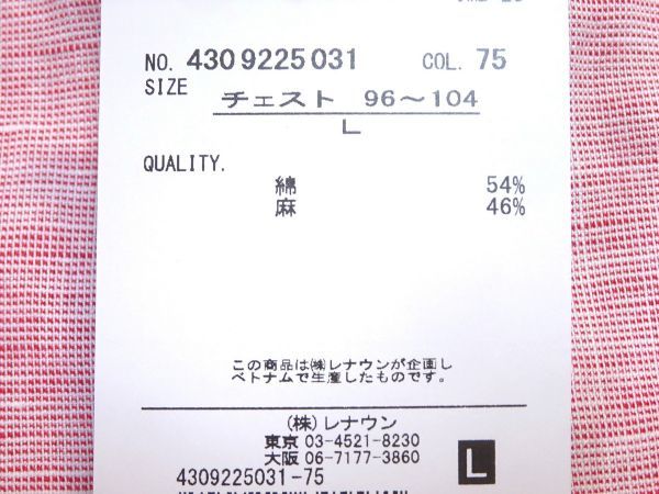 原文:新品▼ インターメッツォ INTERMEZZO▼ リネンMIX 7分袖 サマーシャンブレーシャツ(L)RED