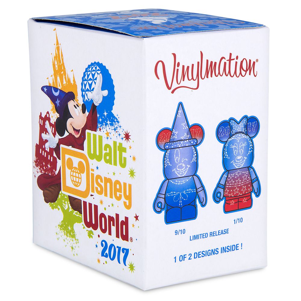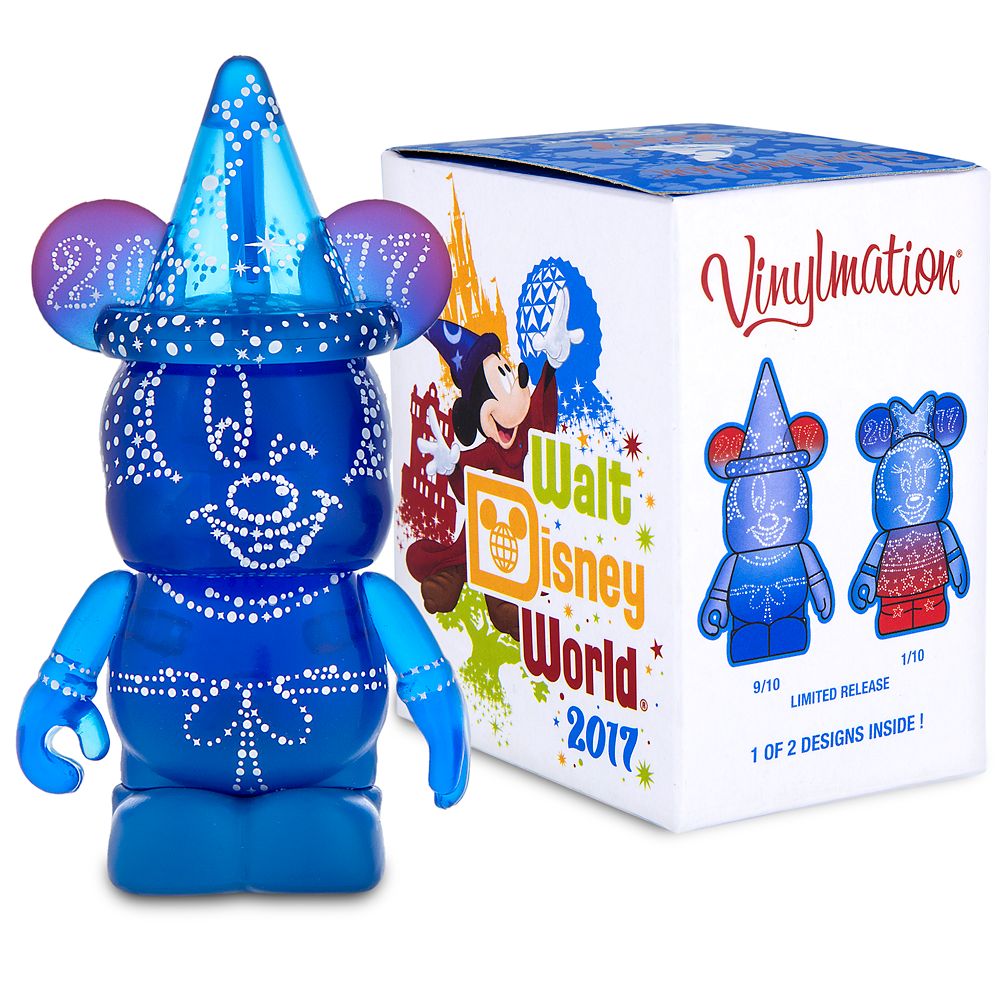 Magic in the details... Created especially for Walt Disney World ResortPlease Note: Purchase of this item is limited to 8 per Guest.Limited ReleaseTranslucent form2017 logo on earsWalt Disney World ''D'' icon on backEach blind box contains one of two different designs: Sorcerer Mickey (9/10), or Minnie (1/10)Artist: A. HamiltonPoseable arms and headVinylmation is the original vinyl collectible figure inspired by the Disney Theme Parks