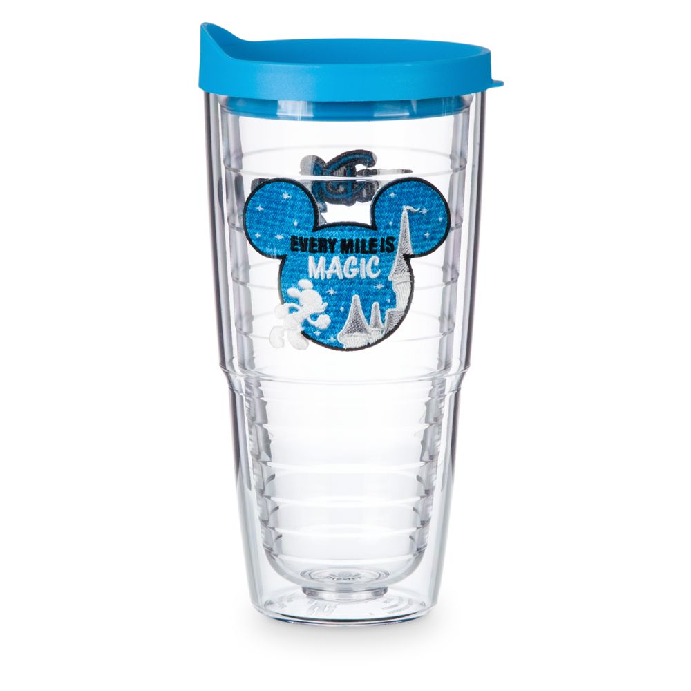 Magic in the details... Created especially for runDisney Clear double wall construction shows the liquid insideScreen art of embroidered patches on inside wall feature Mickey Mouse silhouette and runDisney logoSnap on, spill free lidSliding sipper closureFits in most auto cup holdersKeeps drinks hot or coldLifetime guarantee by manufacturerVisit runDisney.com for information on 2017's calendar of events