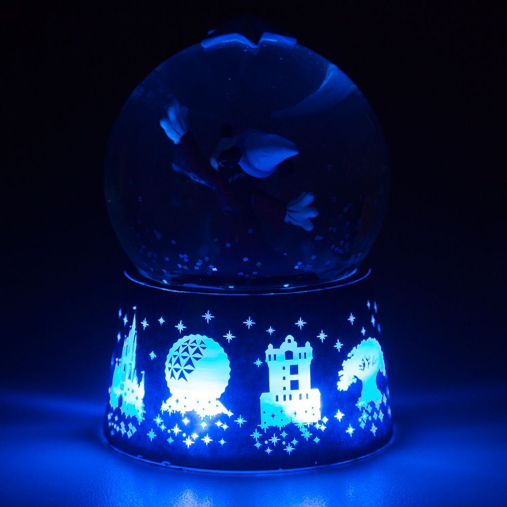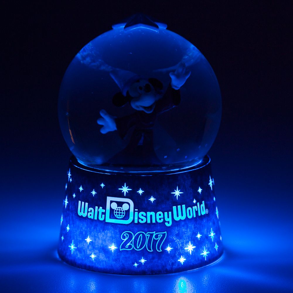 Magic in the details... Created especially for Walt Disney World ResortFully sculptured Sorcerer Mickey figure inside miniature glass globeShake to see a shower of glittering magic dust surround MickeyBase lights up illustrated stardust and icons from Walt Disney World ResortIcons include Cinderella Castle, Spaceship Earth, Hollywood Tower Hotel, and Tree of LifeOn/Off switch on bottomClassic Walt Disney World logo2017 logoInspired by The Sorcerer's Apprentice segment of Walt Disney's Fantasia