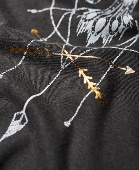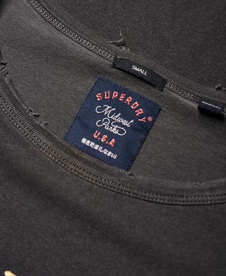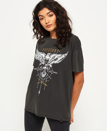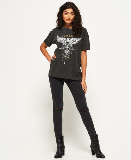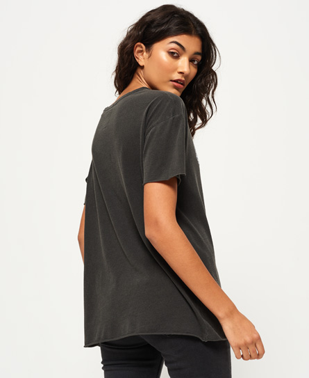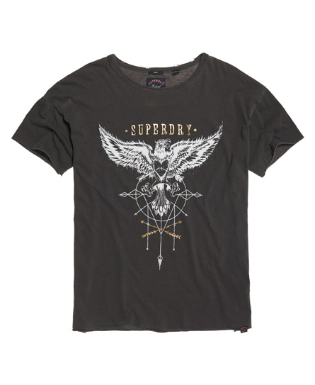 Superdry women’s Band T-shirt. This T-shirt features a distressed neckline, sleeves and hem t-shirt features a unique Superdry free spirit logo across the chest. Finished with a Superdry logo tab on the hem. Model wears:Small Model height: 5’11” (181cm) Model chest size: 31" (80cm)