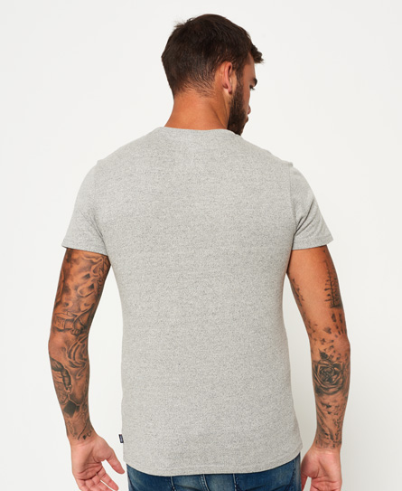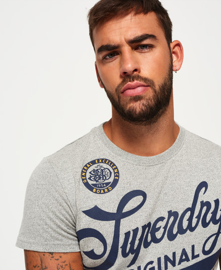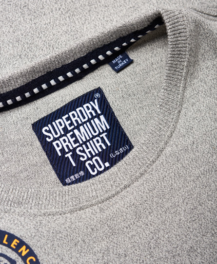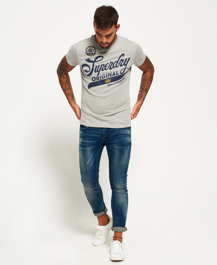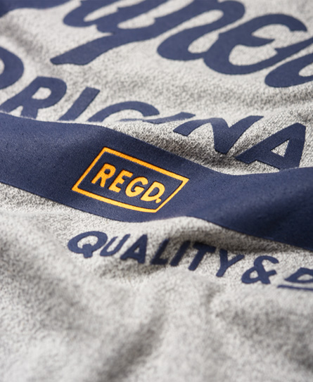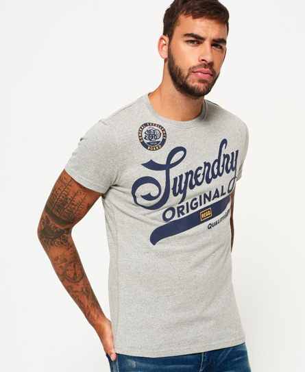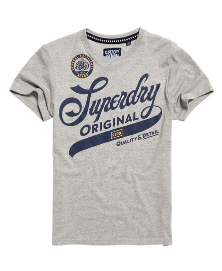 Superdry men’s Quality and Detail t-shirt. A classic short sleeve crew neck t-shirt featuring a motorsport-inspired Superdry logo print on the chest and one sleeve. The t-shirt is finished with a Superdry logo tab on the side seam.